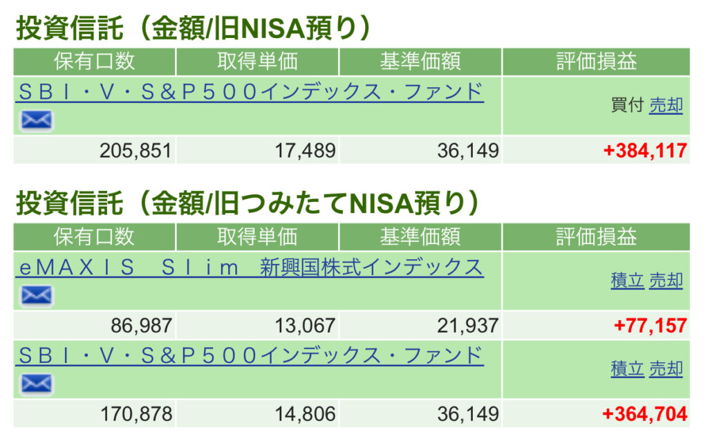 SBI-SBI・V・S&P500運用成績