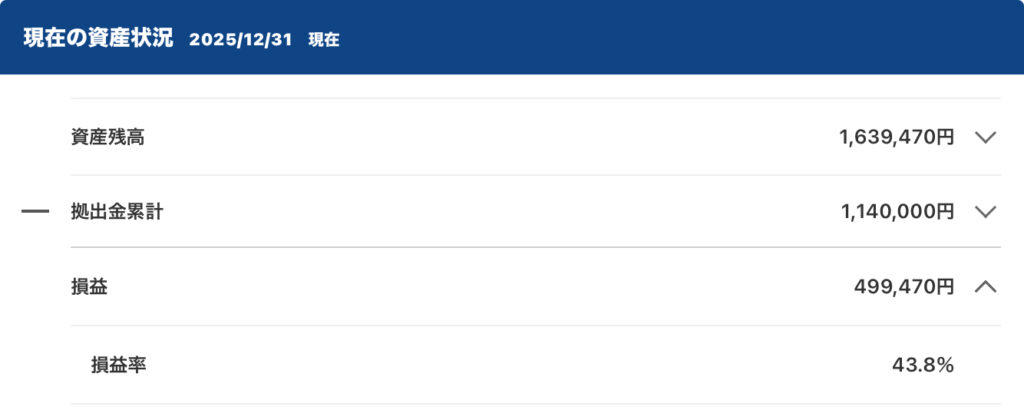 元金11,40,000円利益 499,740円 43.8%